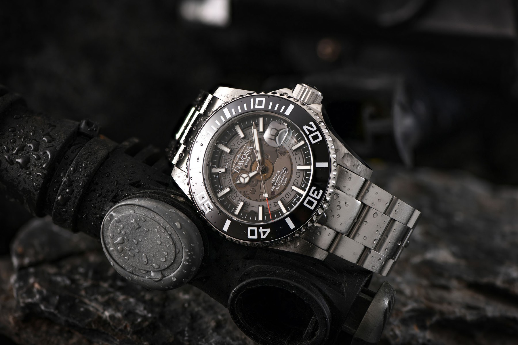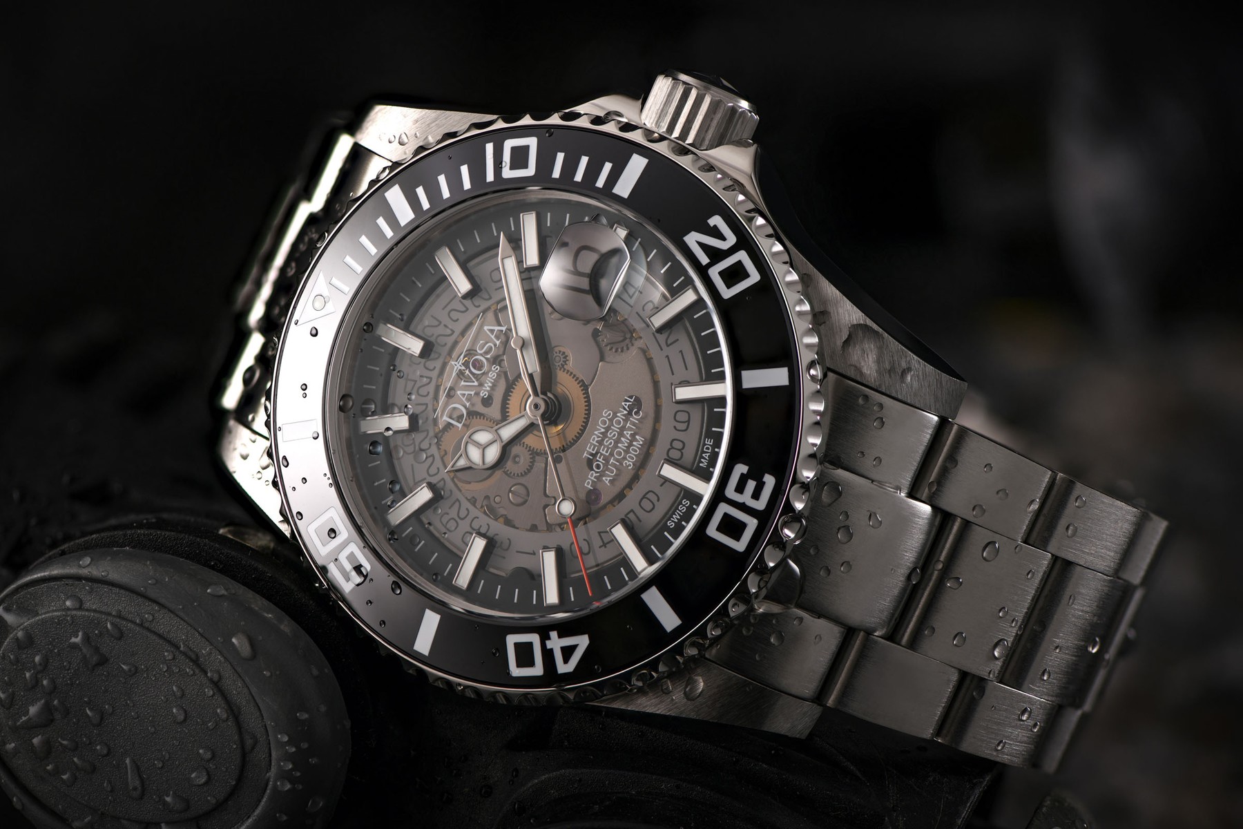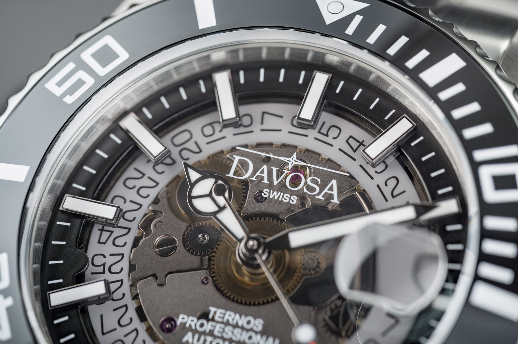 - Davosa Ternos Professional Nebulous Taucheruhren mit halbtransparenten Saphirglas Zifferblättern.
