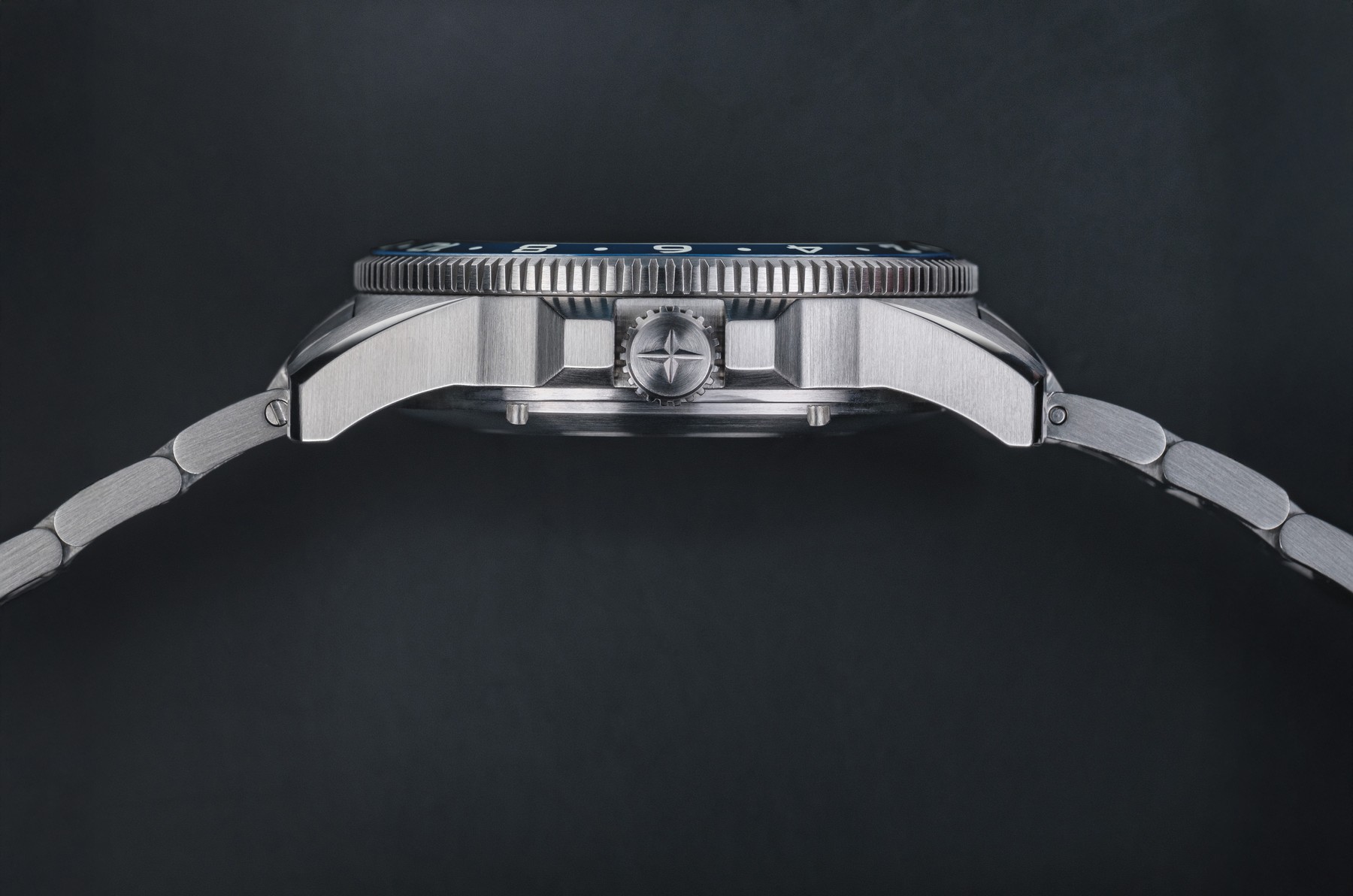 - Gehäusehöhe: Die Bauhöhe der Davosa Argonautic GMT beträgt vom Gehäuseboden bis zur Oberseite des flachen Saphirglas 11,8 mm