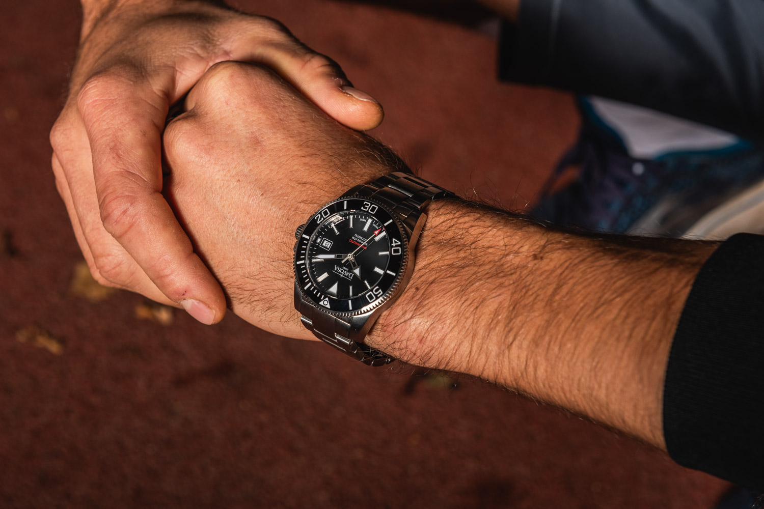 - Angabe der Kollektion Argonautic in roter Schrift im unteren Teil des Zifferblatt