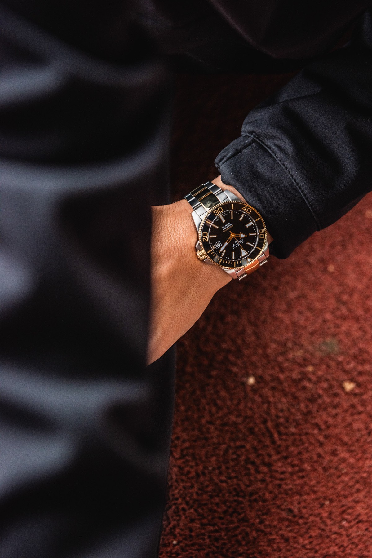 - kratzresistente, schwarze durchgefärbte Keramik-Lünette.