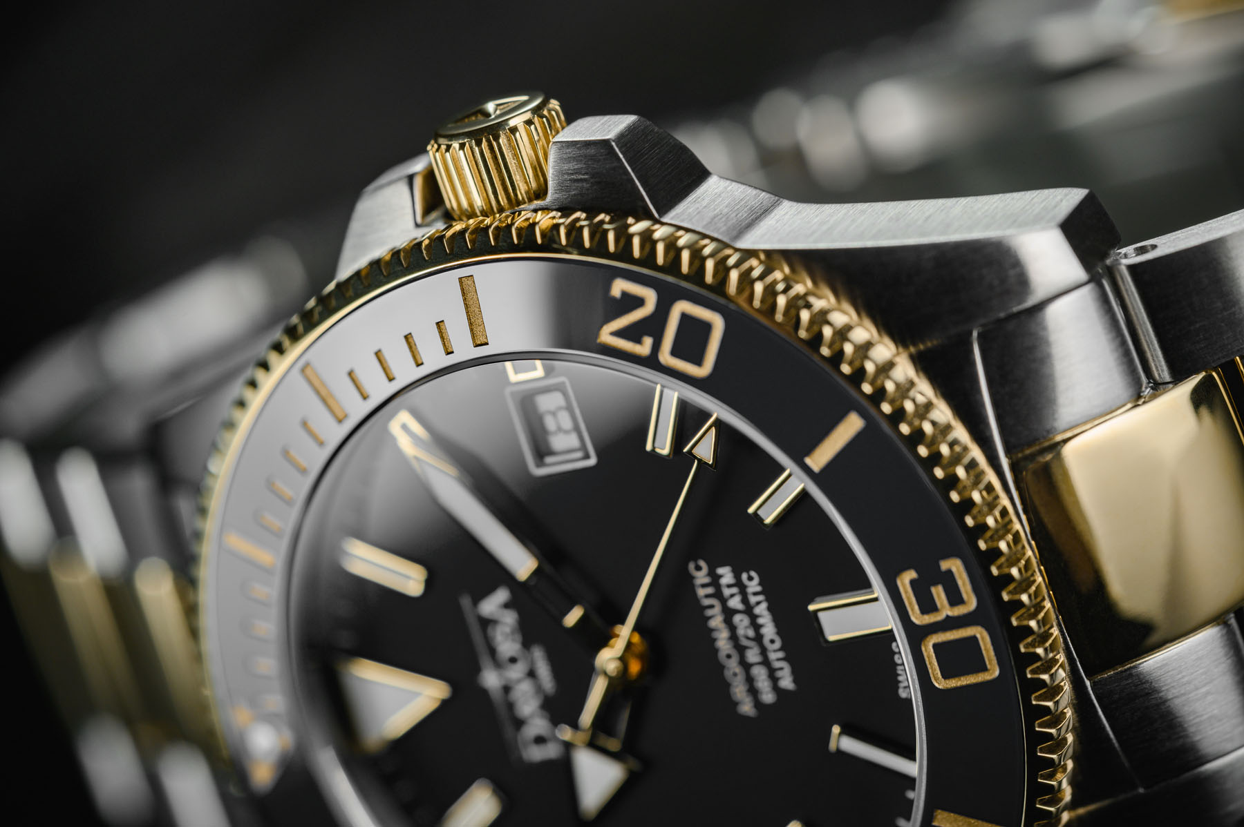 - Davosa Argonautic 39 Diver mit extrem harter Keramik Lunetteninlage.