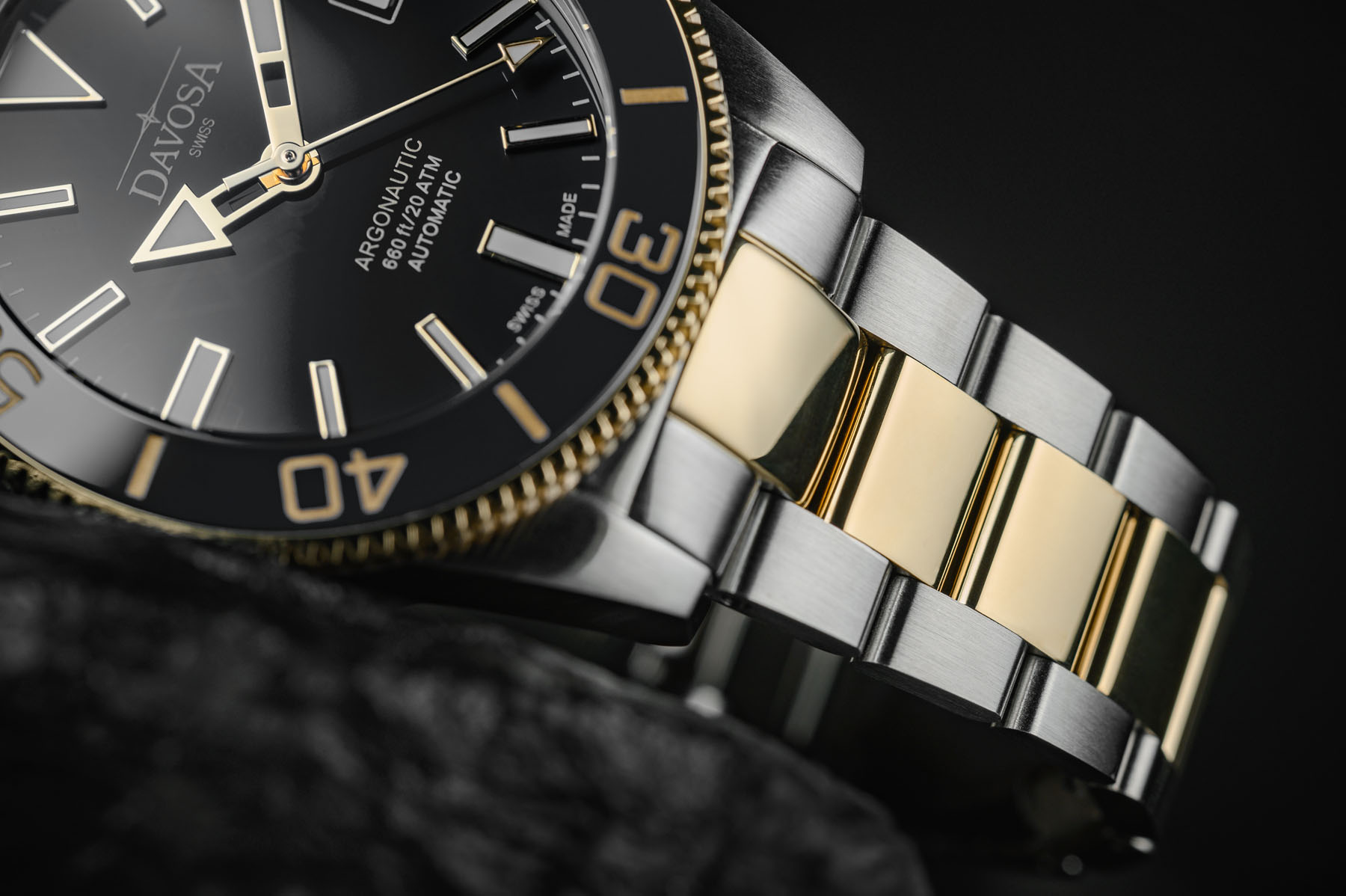 - massives Davosa Argonautic Trialink (Dreireihiges) 316L Bicolor Edelstahlband mit massiven Bandendgliedern.