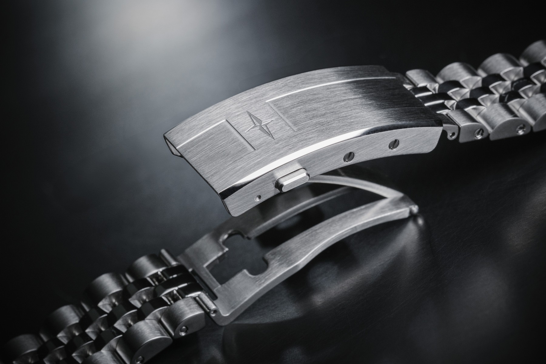 - massives Davosa Ternos Pentalink (Fünfreihige) 316L Edelstahlband mit massiven Bandendgliedern.