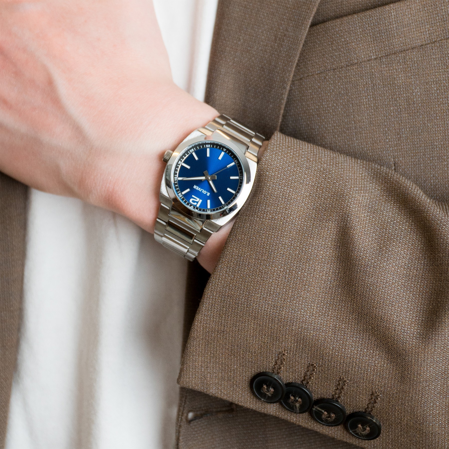 - Gehäusehöhe: Die Bauhöhe der s.Oliver Uhr beträgt vom Gehäuseboden bis zur Oberseite des Uhrenglas 11 mm