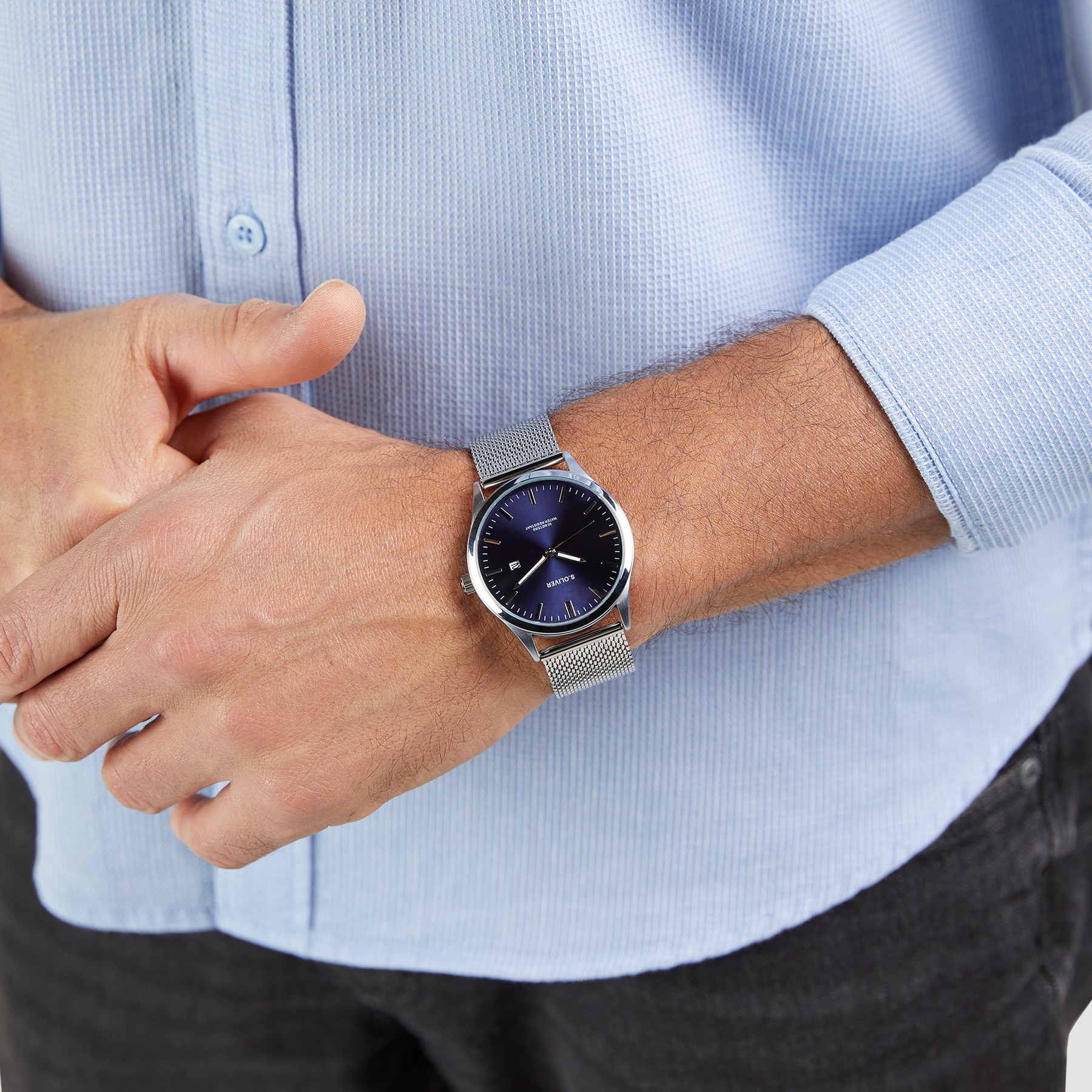 Erhalten Sie direkt hier bei uns diese moderne s.Oliver Herren Analoguhr mit blauem Zifferblatt und einem Durchmesser von 42 mm