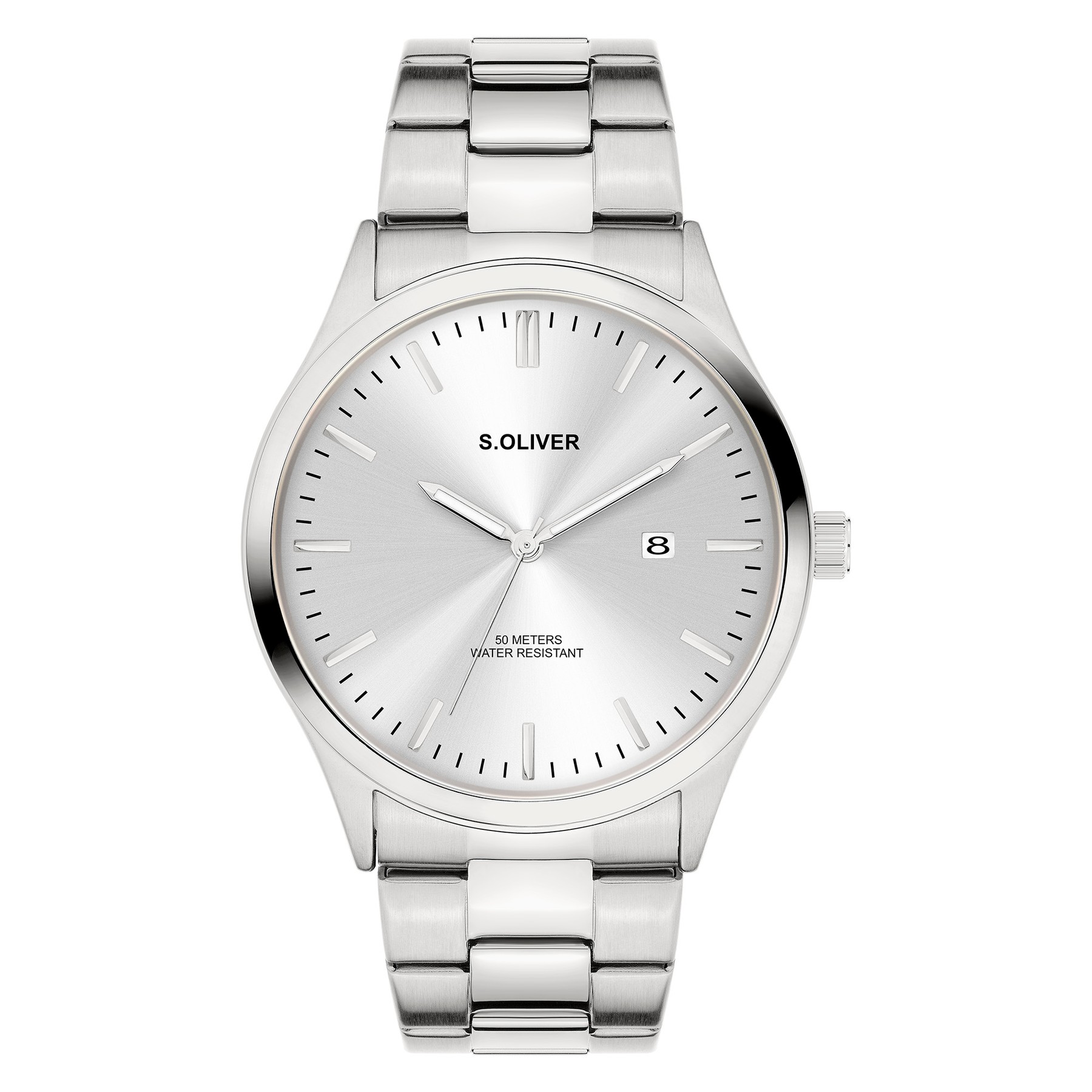 Erhalten Sie direkt hier bei uns diese moderne s.Oliver Herren Analoguhr mit silberem Zifferblatt und einem Durchmesser von 42 mm