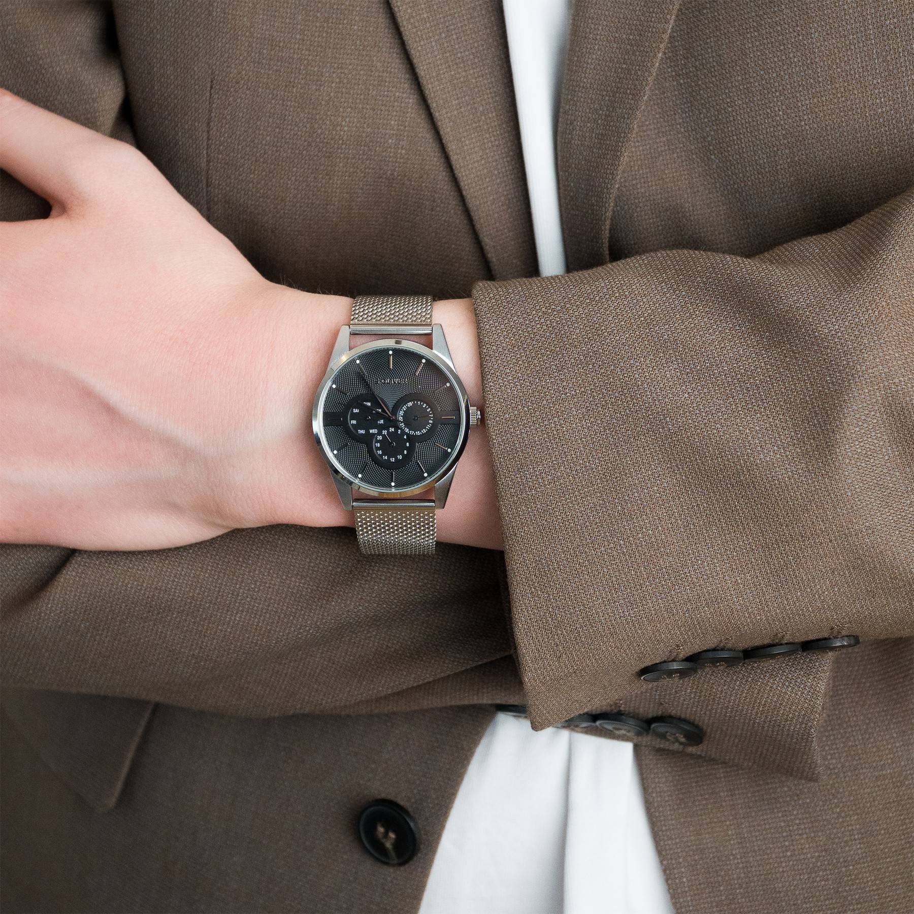 - Gehäusehöhe: Die Bauhöhe der s.Oliver Uhr beträgt vom Gehäuseboden bis zur Oberseite des Uhrenglas 10 mm
