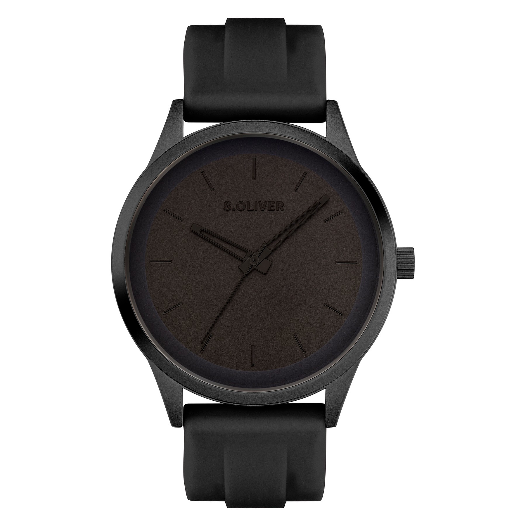 Erhalten Sie direkt hier bei uns diese moderne s.Oliver Herren Analoguhr mit schwarzem Zifferblatt und einem Durchmesser von 45 mm
